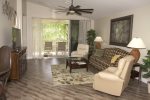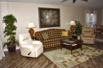 This is a second floor Orchid floor plan condominium.  It features two bedroom, two bathrooms, den, living room, dining room and kitchen with a casual eating area.  The master bedroom has a king-sized bed and a 42" flat screen television.