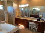 The master bedroom is privately situated from the other bedrooms and has a king size bed, 2 walk in closets, an elegant master bath with 2 sinks, walk in shower and soaking tub! Live like you are always on vacation!! Immaculate, gorgeous home located in the prestigious gated community of Bridgetown at The Plantation! Offers a spectacular lake front views from the comfort of the extended screened in lanai. Tons of upgrades with the premium 42" cabinets, granite countertops, tile back splash, breakfast nook, formal dining area, Viking frig, meili dishwasher, and oversized pantry.